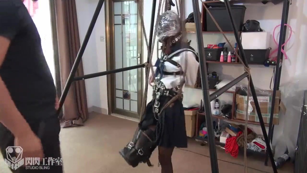Breathless 017 Bunny single leg suspention gas mask play