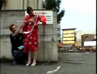 An amateur teen strolls through the avenues of Tokyo wearing only a slingshot swimsuit.
