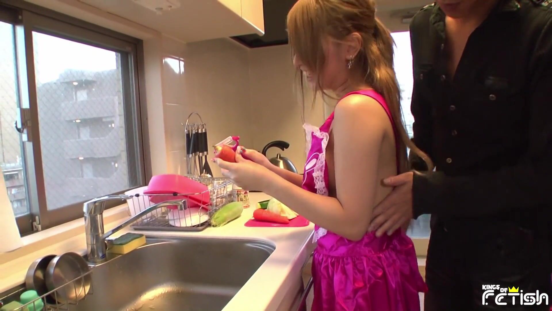 Japanese couple gets filmed while having dirty fun in the kitchen